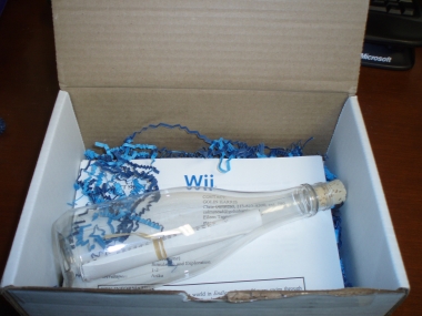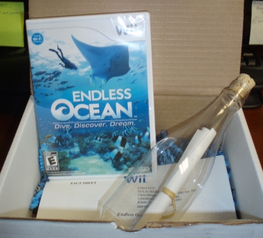Ooh. A message in a bottle. Too bad it is just the stock info sheet that comes with all the games.